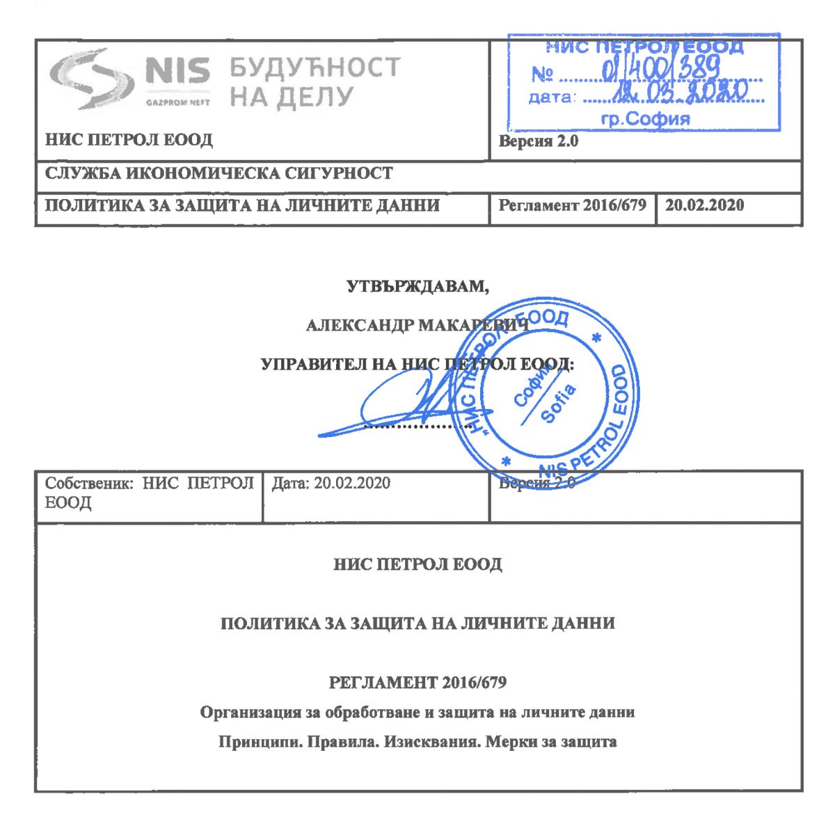 12. ИНФОРМАЦИЯ ОТНОСНО ЗАЩИТАТА НА ЛИЧНИ ДАННИ ПРИ ВИДЕОНАБЛЮДЕНИЕ В ТЪРГОВСКИТЕ ОБЕКТИ НА „НИС ПЕТРОЛ“ ЕООД